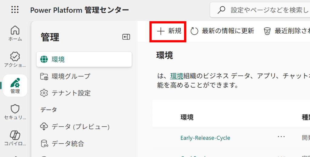 Power Platform 管理センターから環境を作成し、マネージド環境を有効化します。