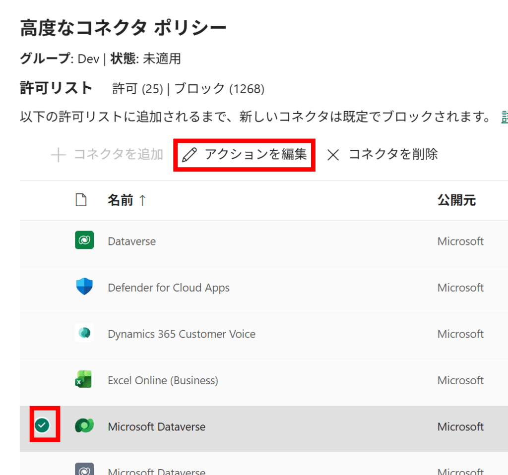 - 高度なコネクタポリシーで Dataverse が許可されている