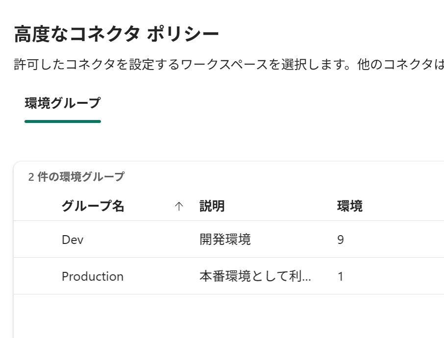 こちらを選択して、環境グループが表示されなかった場合、特に設定がされていない状態なのでこちらの設定はそのままで大丈夫です。