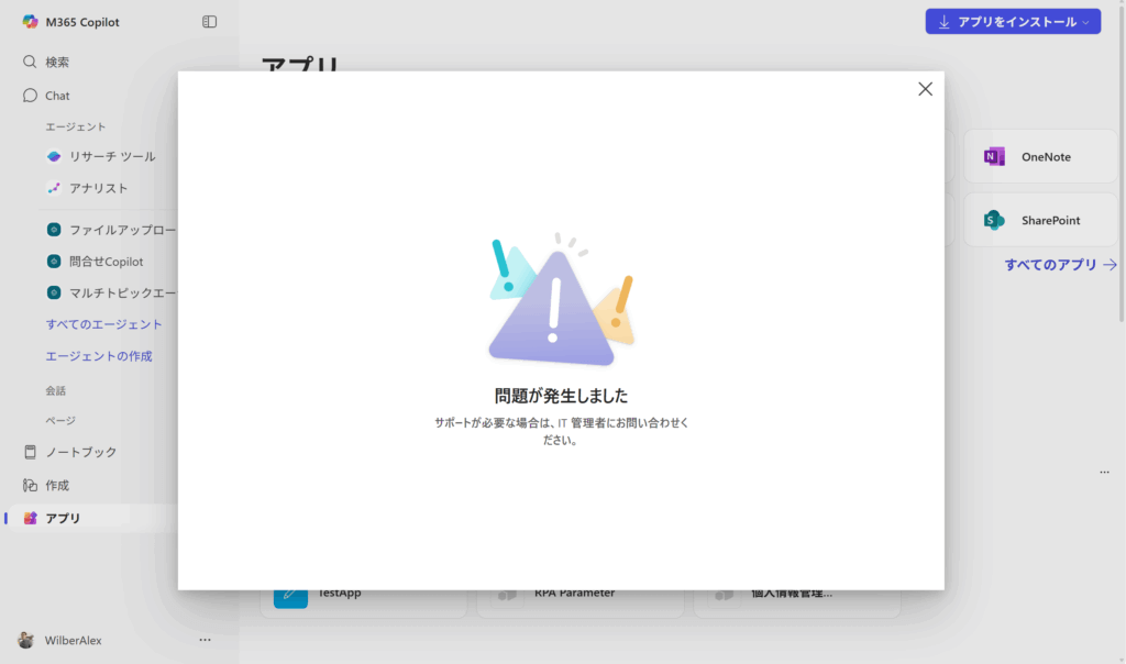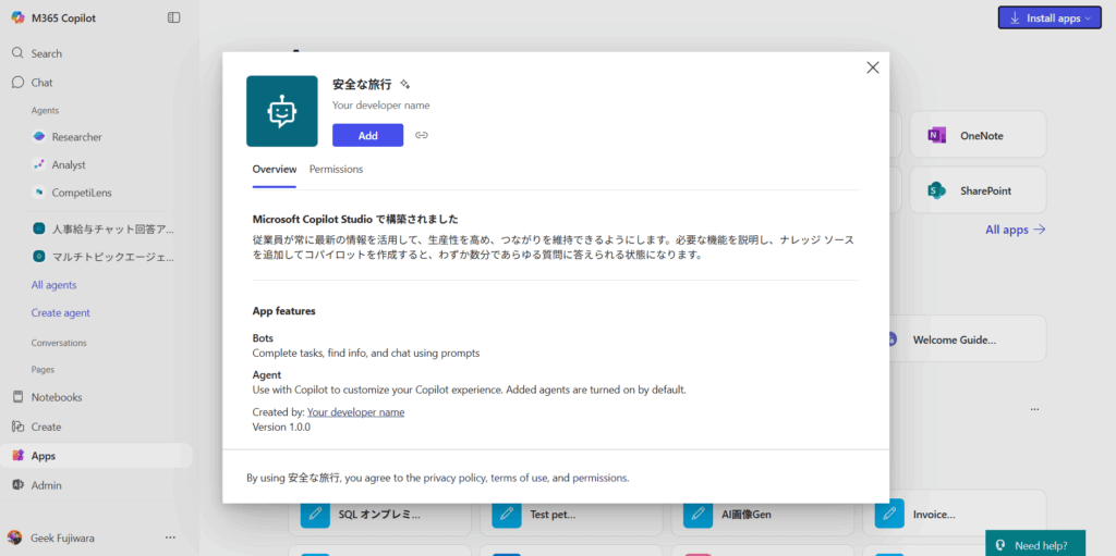 Copilot のチャネルでエージェントの利用ができるかを確認する