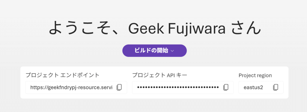 プロジェクトのエンドポイント情報、エージェントIDを取得する
