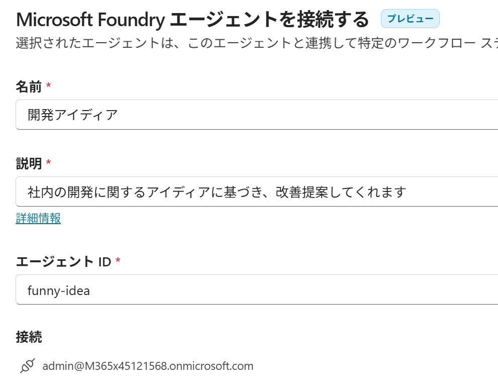 取得した情報からMicrosoft Foundry のエージェントの設定を行う