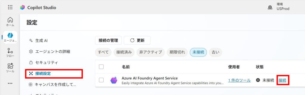 Copilot Studio にて接続する