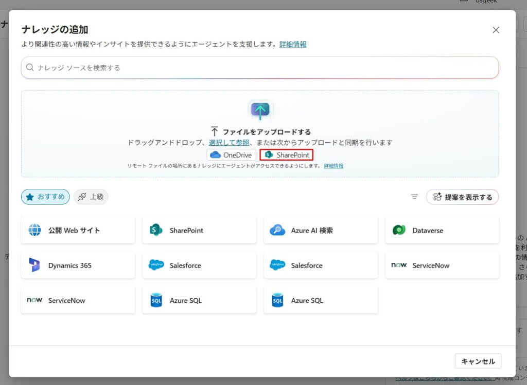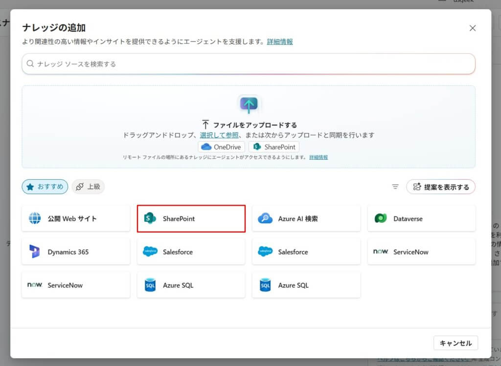 ❌ 方法1:SharePointサイトをナレッジソースとして接続