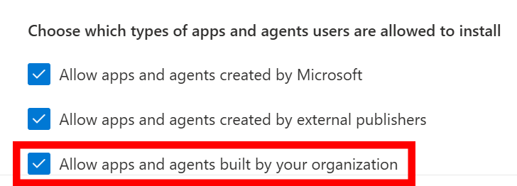 影響:この設定は「エージェントを利用できるかどうか」を決定します。利用権限がないユーザーは、Copilot 内でエージェントを追加できません。
