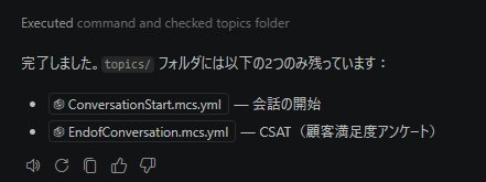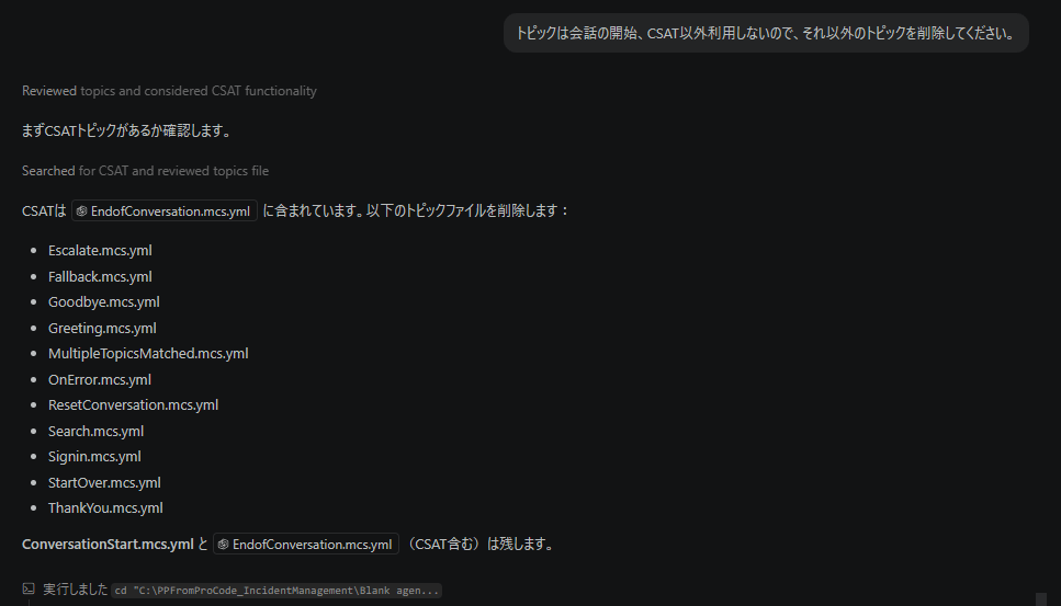 トピックで使わないものは削除してもらいます。自然言語でまとめて指示できるのはとてもありがたいです。
