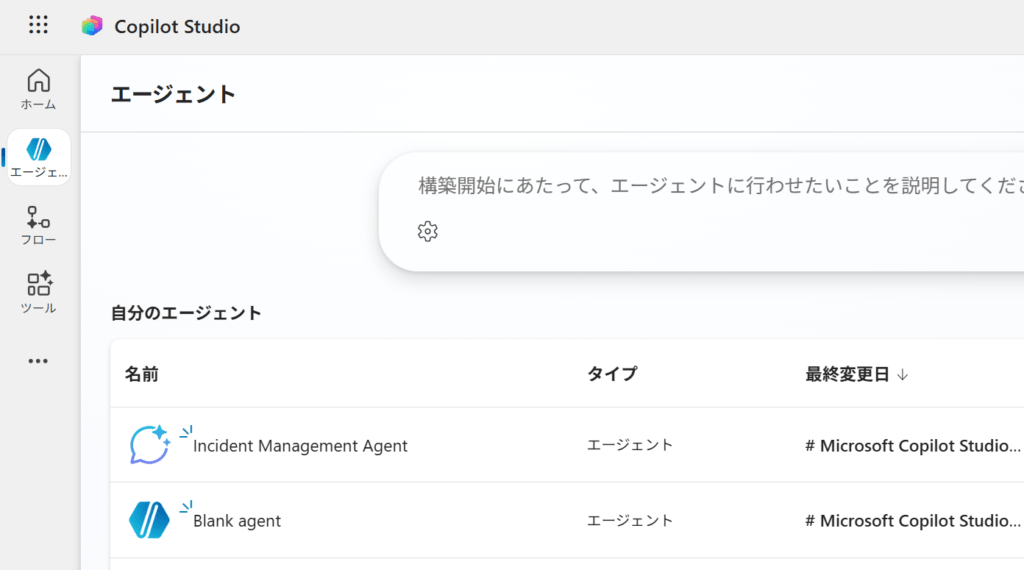 エージェントの新規作成は Copilot Studio スキルでは不可