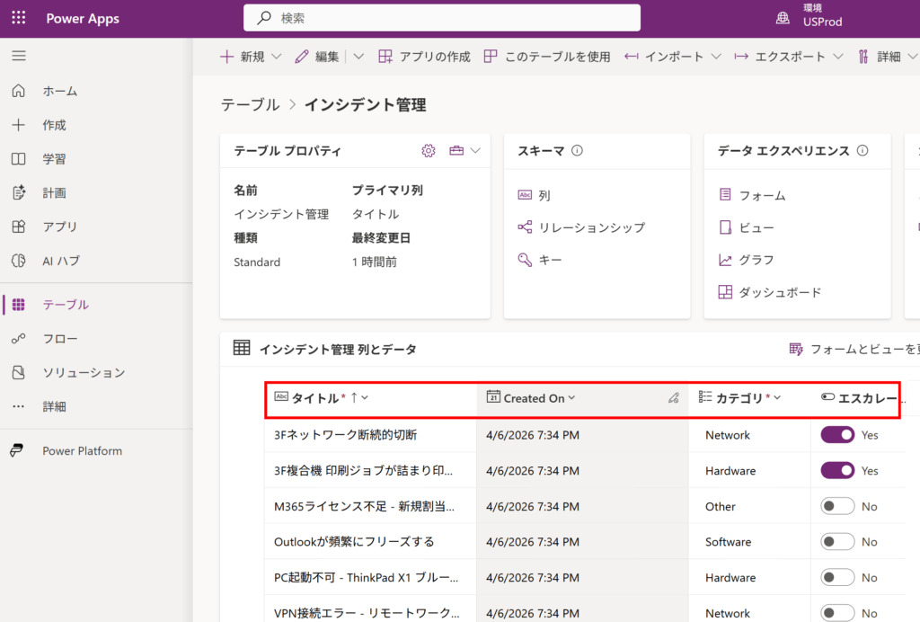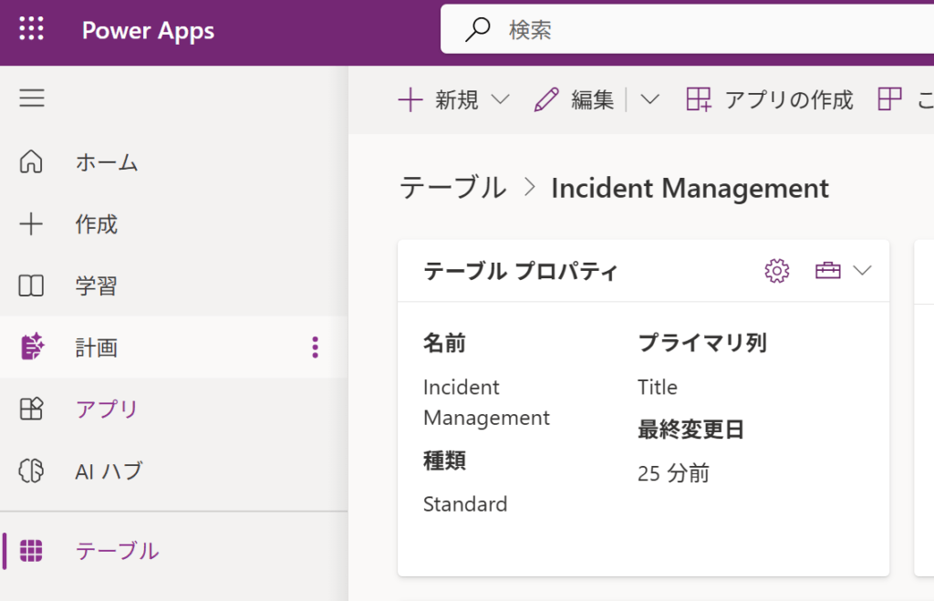 実際に Power Apps ポータルを見てみるとテーブルが存在しています。