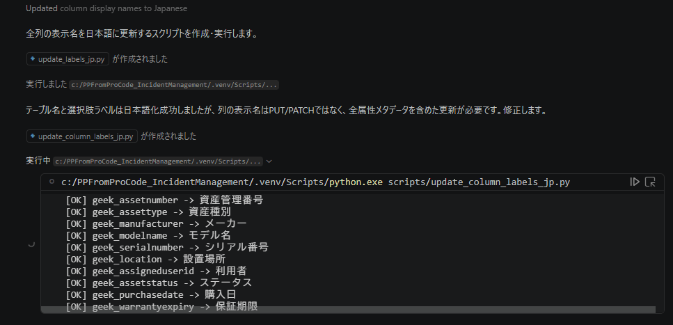 列は日本語の表示名にしてもらいたいので追加で依頼します。