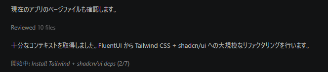 以下のような指示を GitHub Copilot に対して行い、ここまでの設定を修正させます。