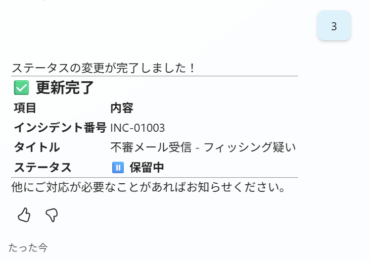 登録されていることがわかりました。次に編集してみます。ステータスについて変更したいと言うと、アドバイスをくれます。